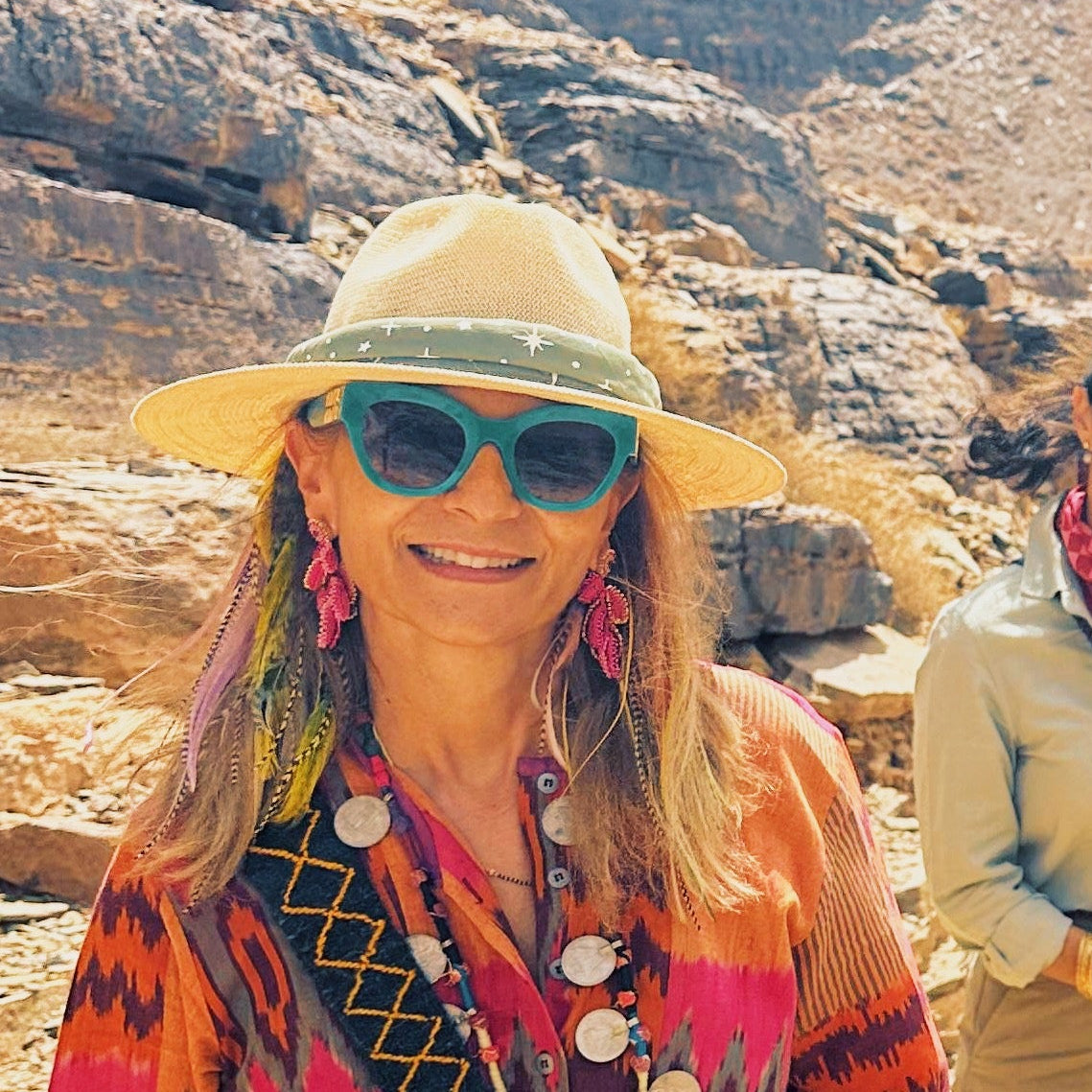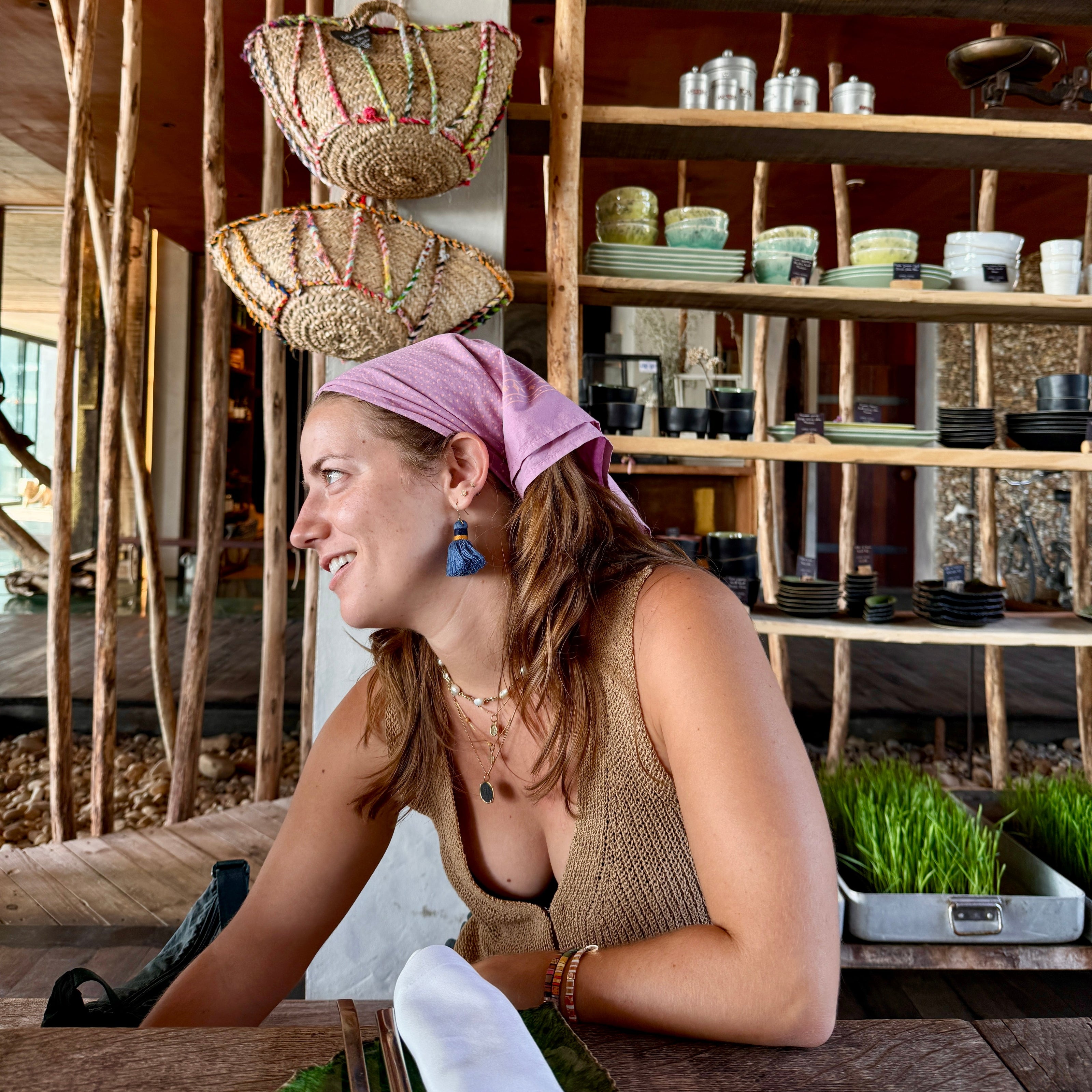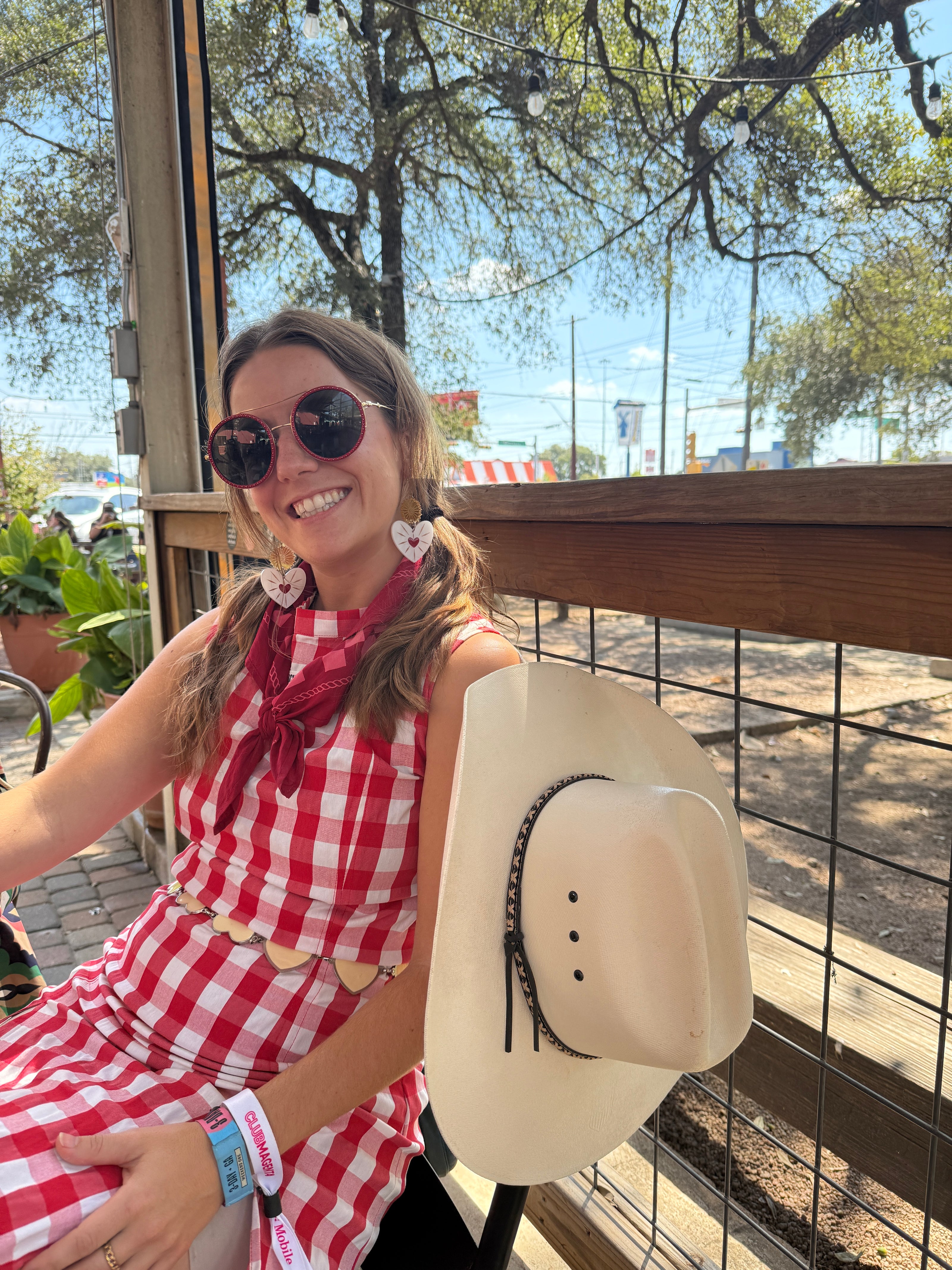 - Tie around your hat: Wearing a wide brim hat? A bandana can be a versatile hat band to add some pizzazz.