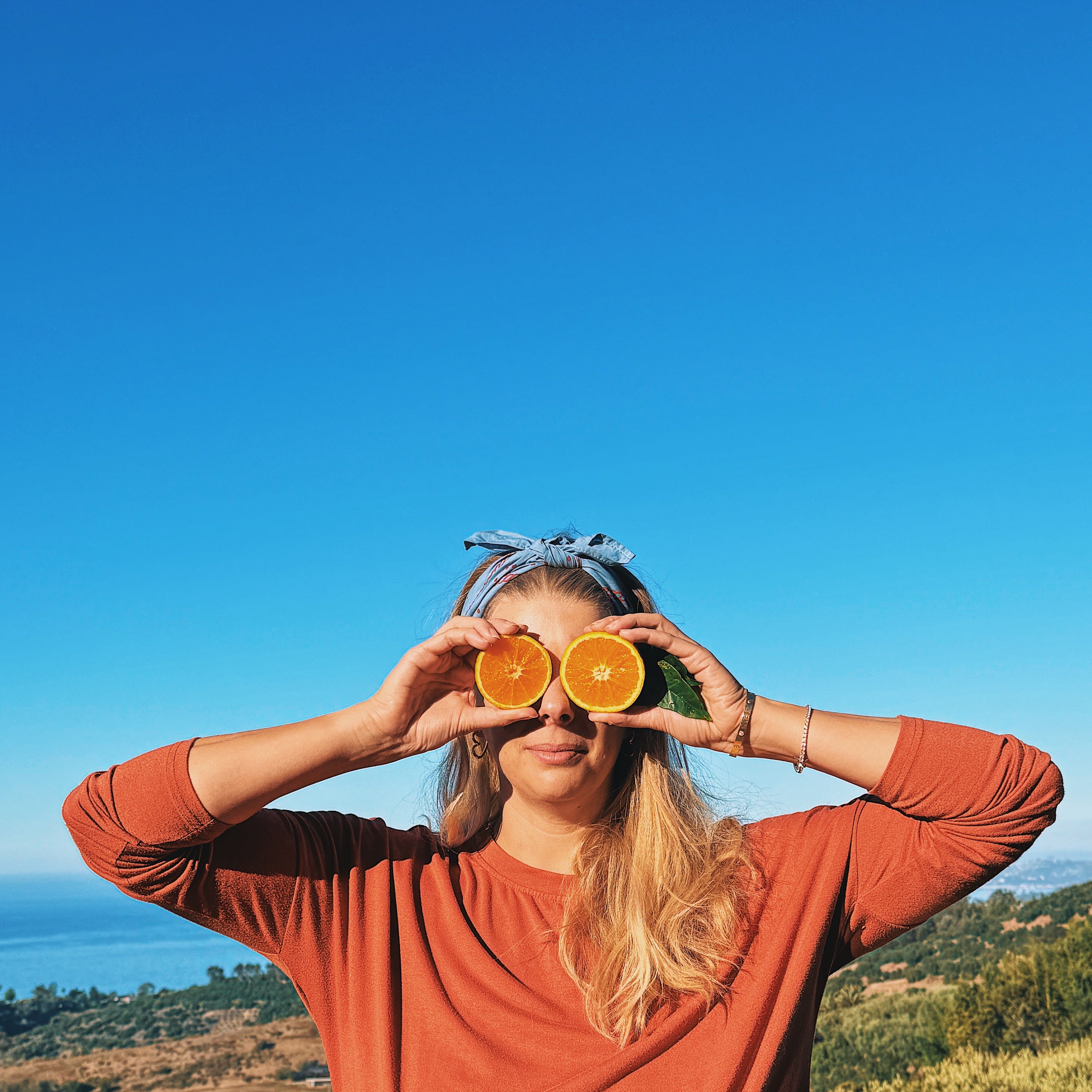 - Wear in your hair: fold on the diagonal for maximum hair coverage, which is useful for windy days and driving with the windows down. Or for more of a hairband look, simply roll and tie with a knot in the front (or back!).
